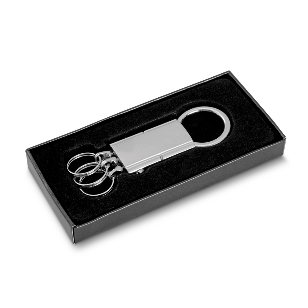 Chaveiro em Metal com 3 Argolas e Embalagem Caixa.