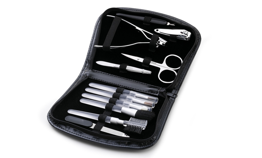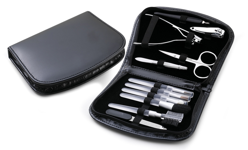 Kit Manicure 11  Peças Com Estojo Em Couro Sintético.
