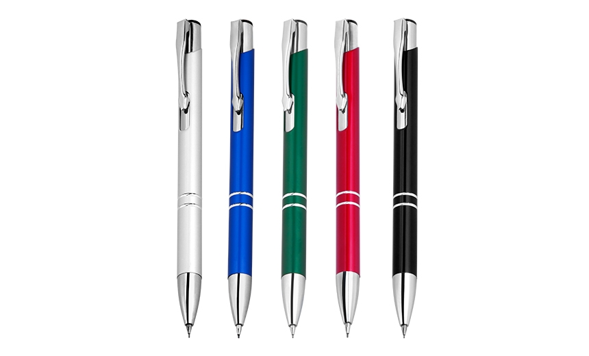 Encontre Lapiseira Em Metal Com Detalhe de 2 Anéis Personalizado e muito mais Brindes Personalizados.