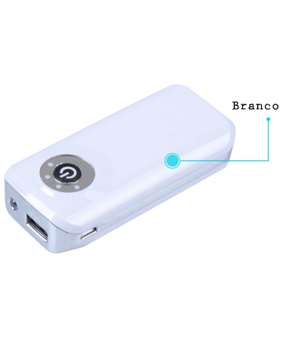 Carregador Portátil USB Power Bank em Plástico Resistente com Bateria de 5400 mAh em Diversas Cores