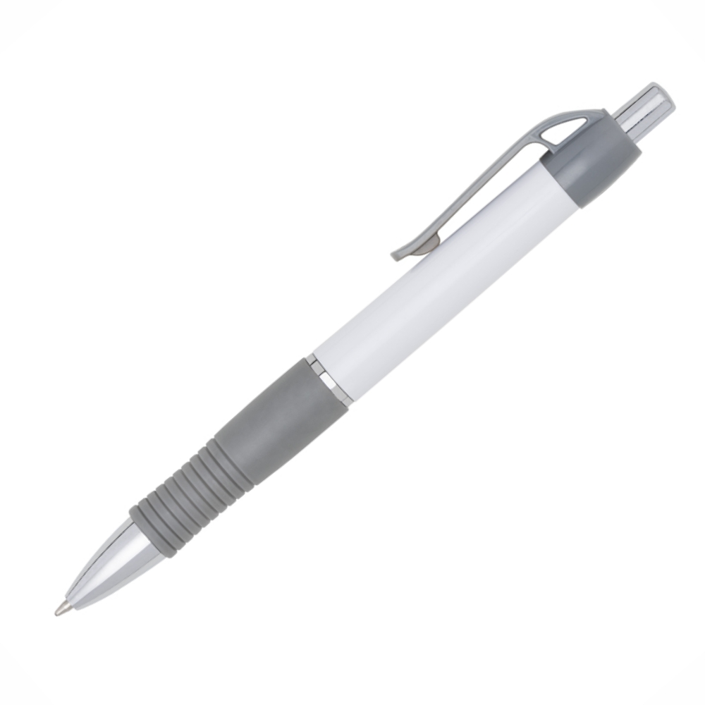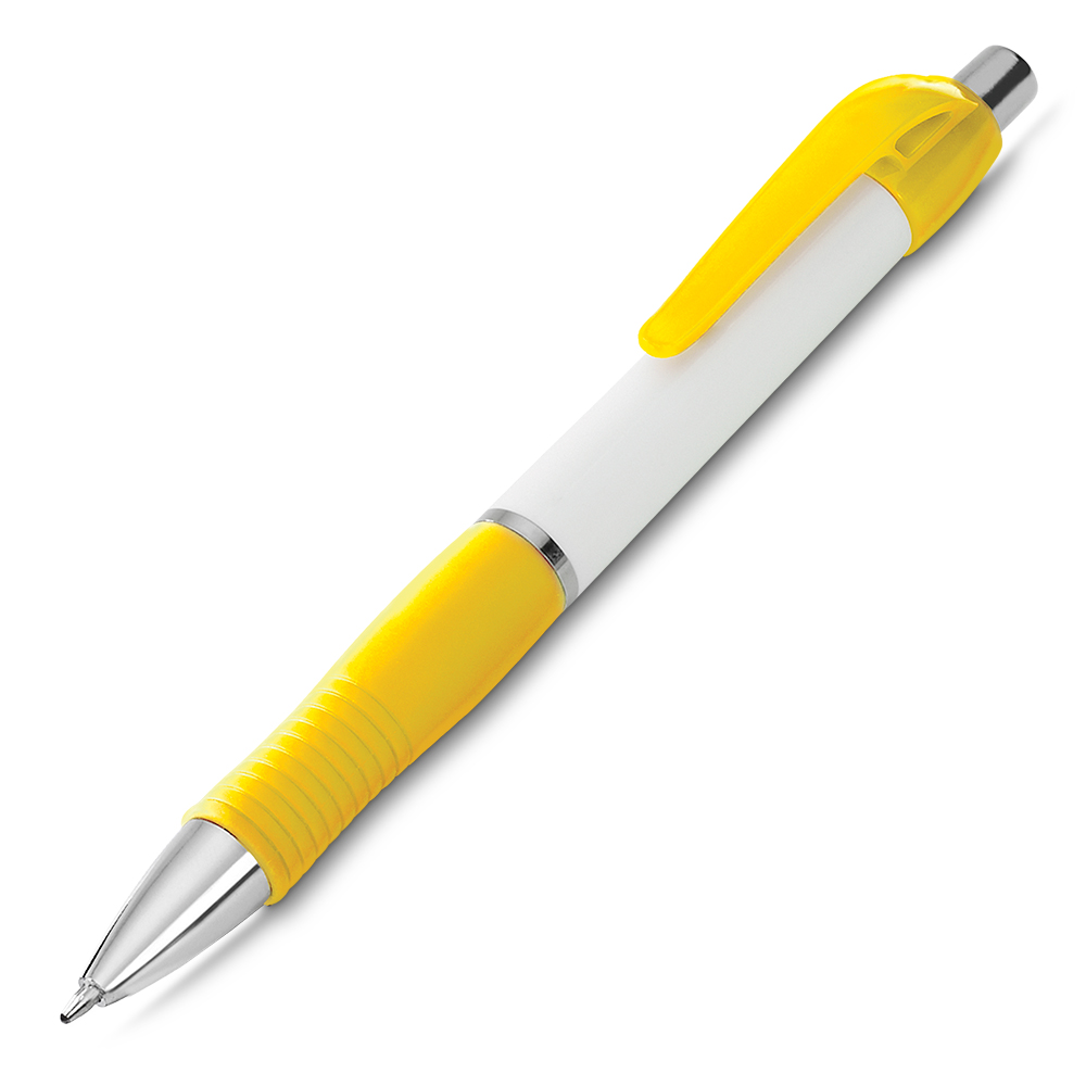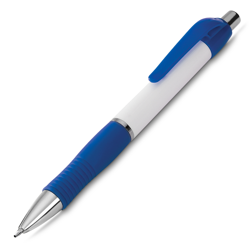 Encontre Caneta Plástica Branca Com Detalhes Coloridos Personalizado e muito mais Brindes Personalizados.