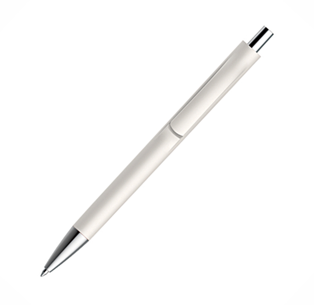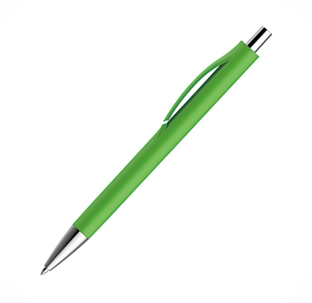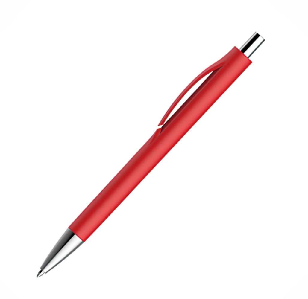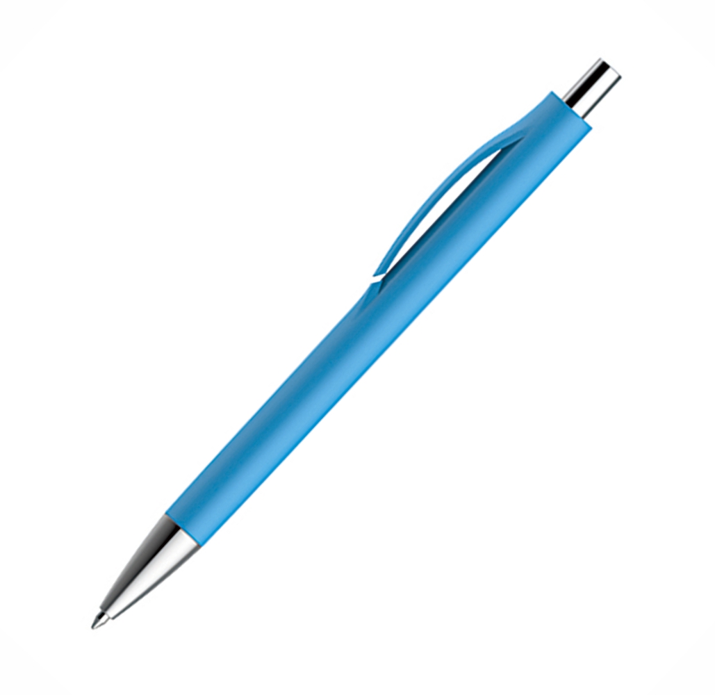 Caneta Semi-Metal com corpo e clip coloridos e com detalhes prata.