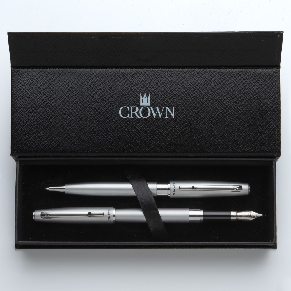 Encontre Conjunto Caneta Metal Esferográfica e Tinteiro Crown Barcelona Prata Personalizado e muito mais Brindes Personalizados.